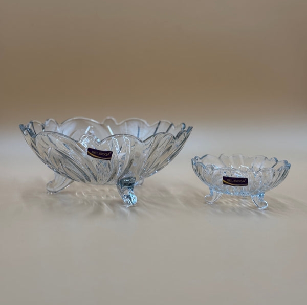 This elegant glassware set includes Approx.1 large bowl (1.5L) and 6 small bowls (250ml each) — perfect for fruits, custard, pudding, or ice cream.