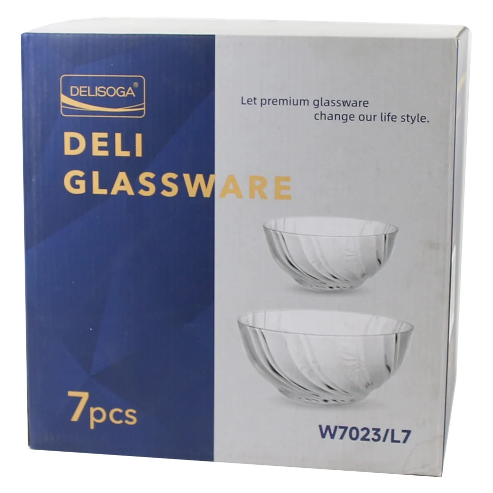 Bring elegance and charm to your dining table with the Delisoga 7-Piece Premium Glass Fruit & Dessert Bowl Set. This beautifully crafted set includes 1 large serving bowl and 6 small bowls, perfect for serving fruit, custard, kheer, ice cream, or desserts.