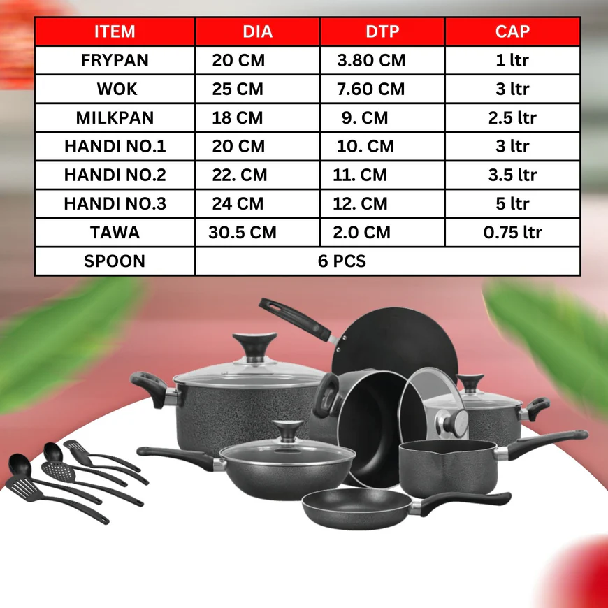 The non-stick coating on every piece allows you to cook with less oil, making your meals lighter and healthier. Food slides off easily, which means there’s less mess, and cleanup becomes quick and effortless. You can cook your favorite dishes without worrying about sticking or burning.