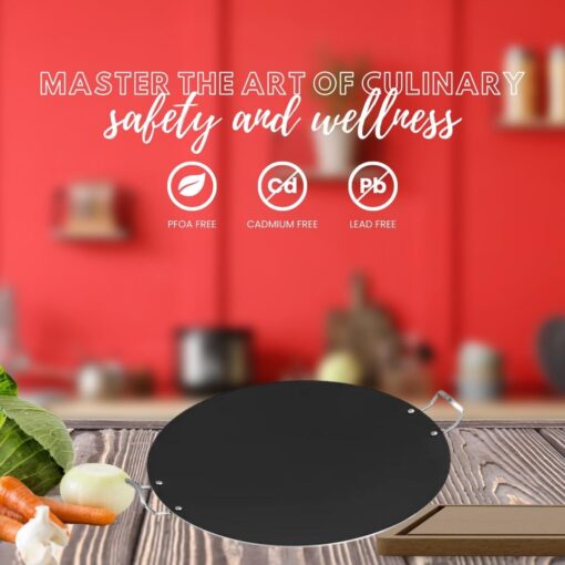 Made from high-quality iron, this tawa stands up to daily wear and tear without warping. It’s solid, stable, and dependable — even with heavy, prolonged use.