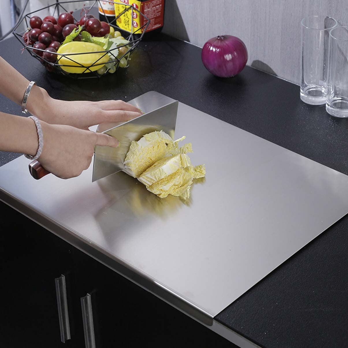 Add a modern, sanitary touch to your kitchen with the Stainless Steel Cutting Board, designed for those who demand hygiene and durability. Unlike wood or plastic boards, this stainless steel version resists stains, odors, and deep knife marks, ensuring a longer lifespan and cleaner cooking surface.