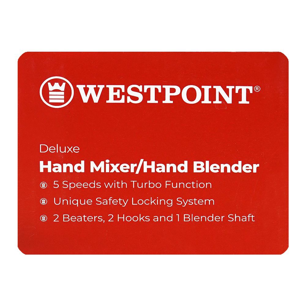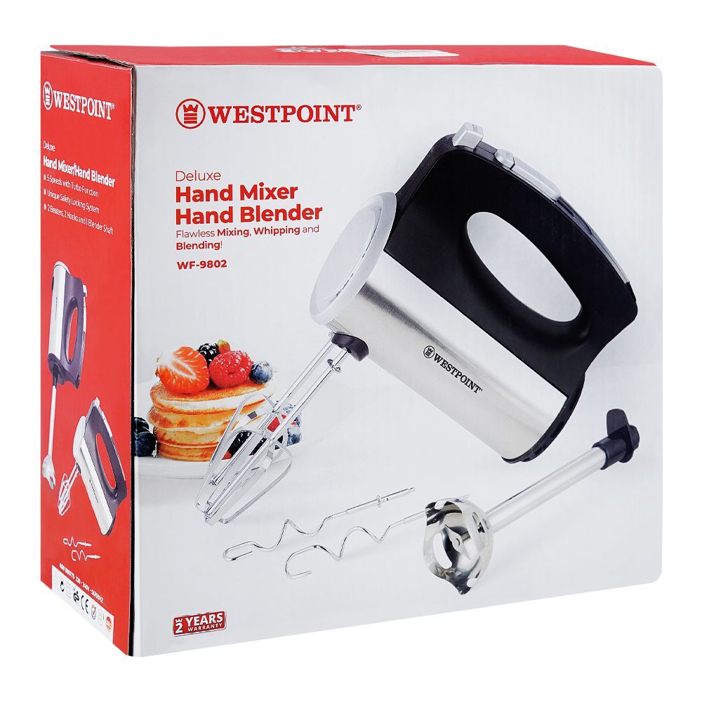 Upgrade your kitchen with the Westpoint Deluxe Hand Mixer / Hand Blender WF-9802 — a powerful and versatile 2-in-1 appliance for effortless mixing and blending. Equipped with a 400W high-performance motor and 5 speed settings with turbo function, it delivers perfect results for whipping cream, mixing cake batter, or blending smoothies.